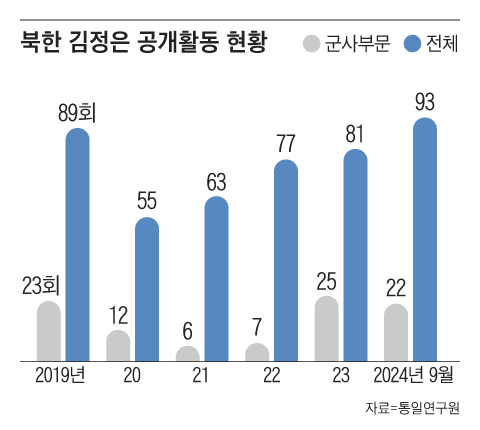 북한은 최근 김정은 암살 가능성을 의식해 경호 수위를 격상했다고 국정원은 밝혔다. 국정원은 “올해 김정은의 공개 활동은 작년에 비해서 현재까지 110회, 약 60% 이상 증가했다”며 “김정은 암살 등을 의식해서 통신 재밍(전파방해) 차량 운용, 드론 탐지 장비 도입 추진 등 경호 수위를 격상하고 있다”고 했다. 이는 러시아 파병 사실이 국제사회에 알려지고 최근 중동에서 이스라엘의 하마스·헤즈볼라 수뇌부를 겨냥한 암살전이 벌어지는 것과 관련해 김정은이 신변에 위협을 느끼는 방증으로 보인다.