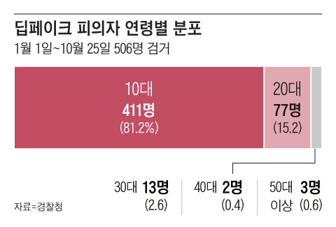 딥페이크 성범죄 올해 506명 검거… 10대가 81% 최다